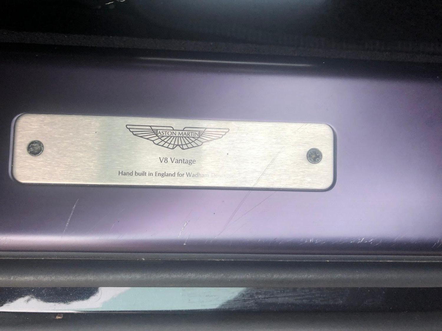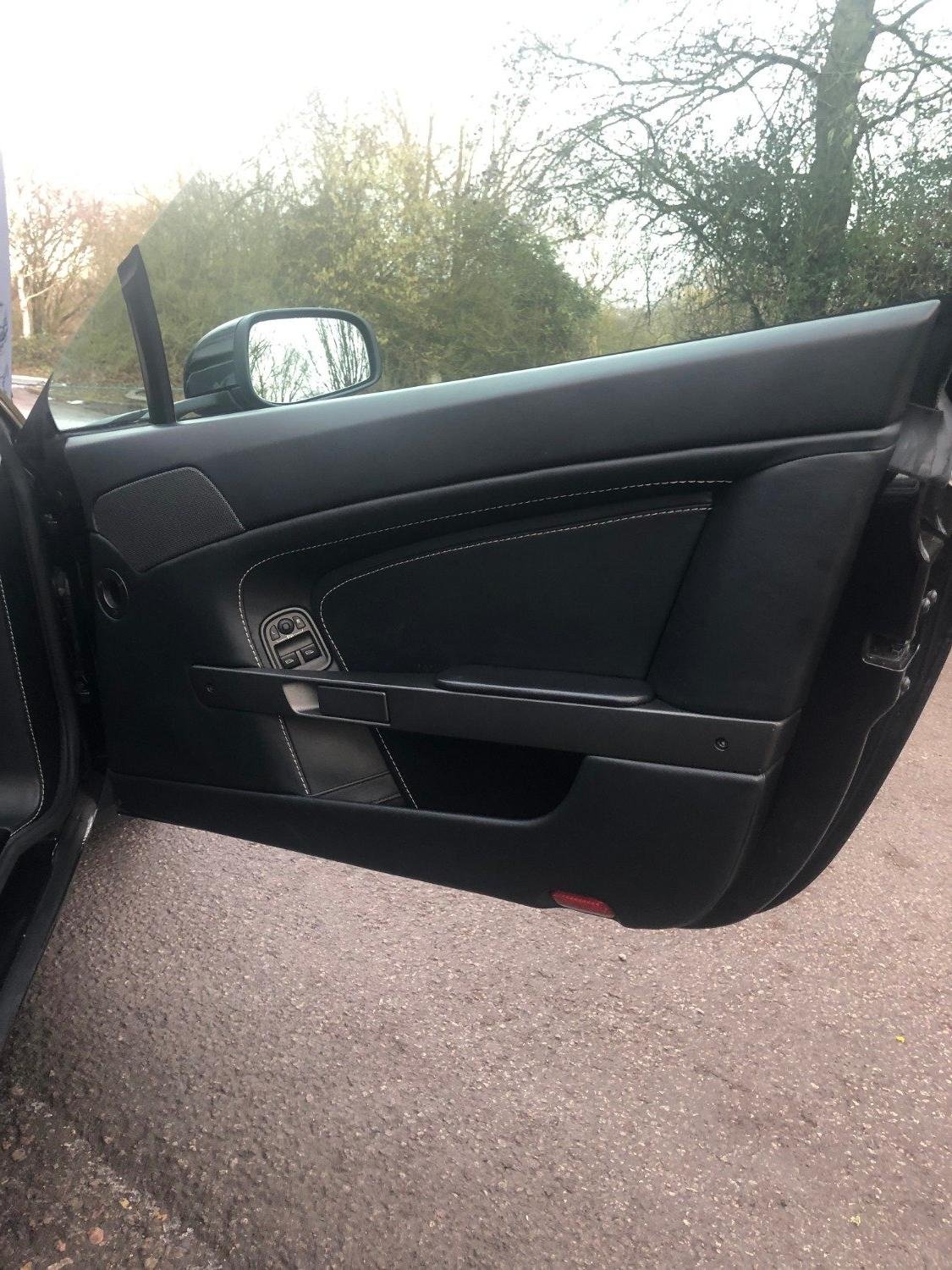 It’s a Vantage 4.3 V8 in Onyx Black with 19” 7 spoke alloy wheels and red calipers, 36,398 miles on the clock and a full service history. Inside, it is leather Obsidian Black interior finished in silver stitching, Piano black veneer and has with High Speck alarm with Blue tooth phone and auxiliary inputs for the radio. Bright finish grille / HID headlamps / auto dimming rear view mirror / satnav / heated seats / rear parking sensors. My criticisms, if I had to make them, name plates in the door sills are still the original owners and there is a slight distortion on the leather on the corner of one part of the dash – otherwise, just beautiful.