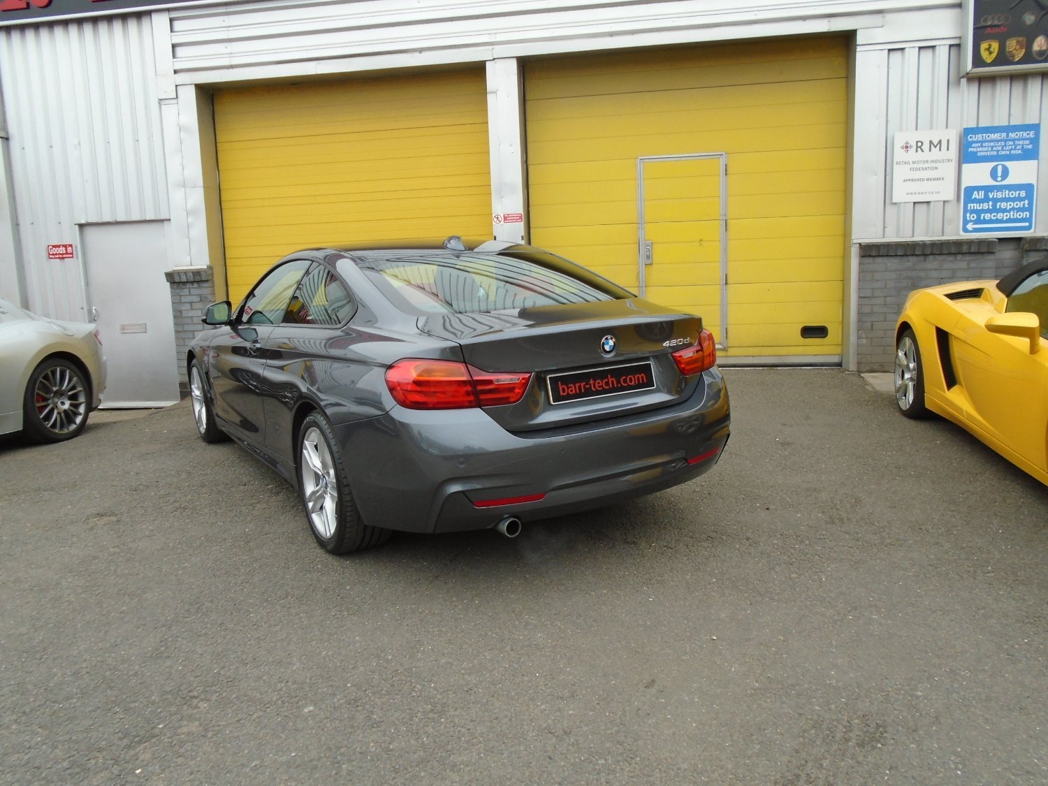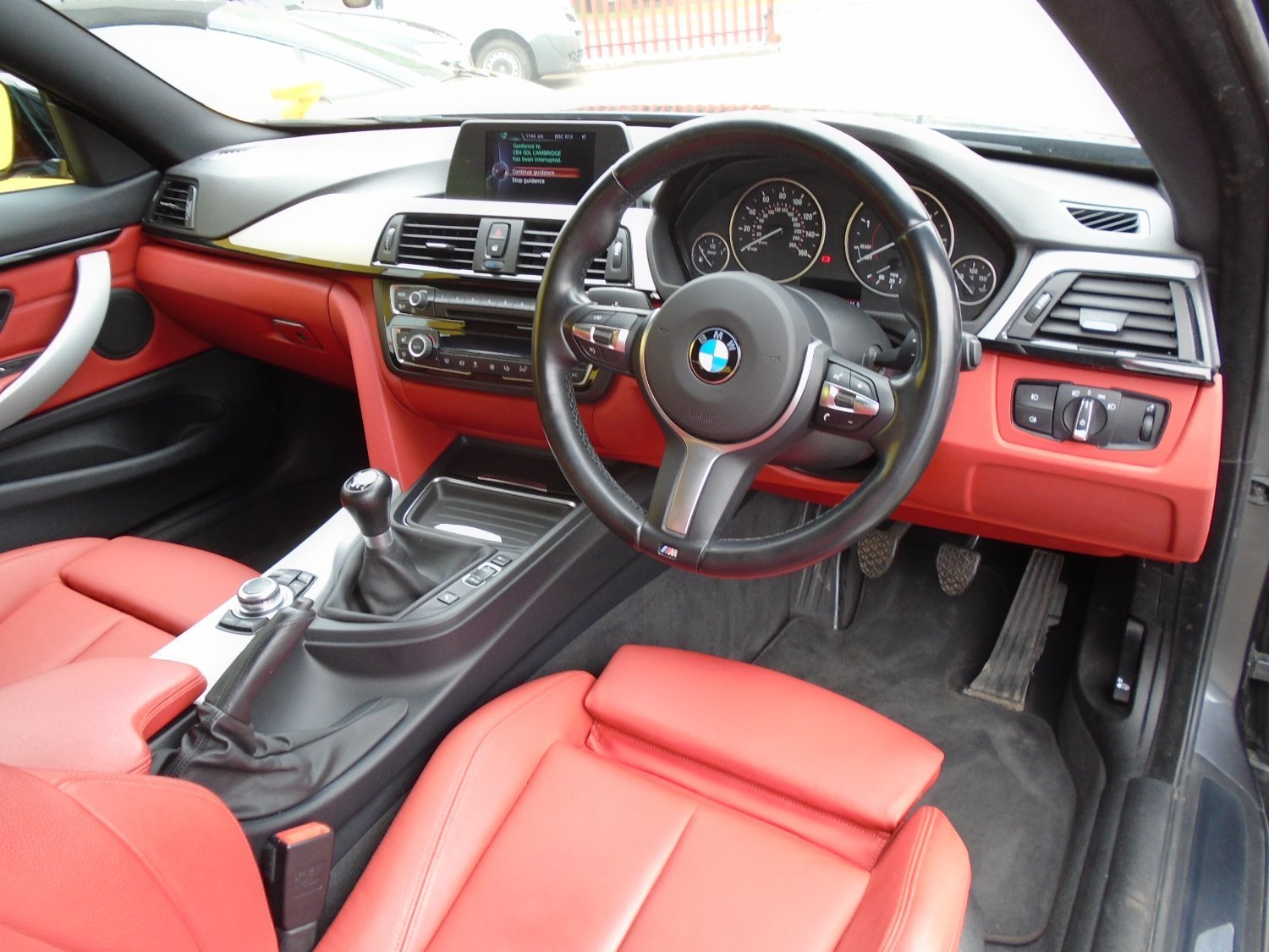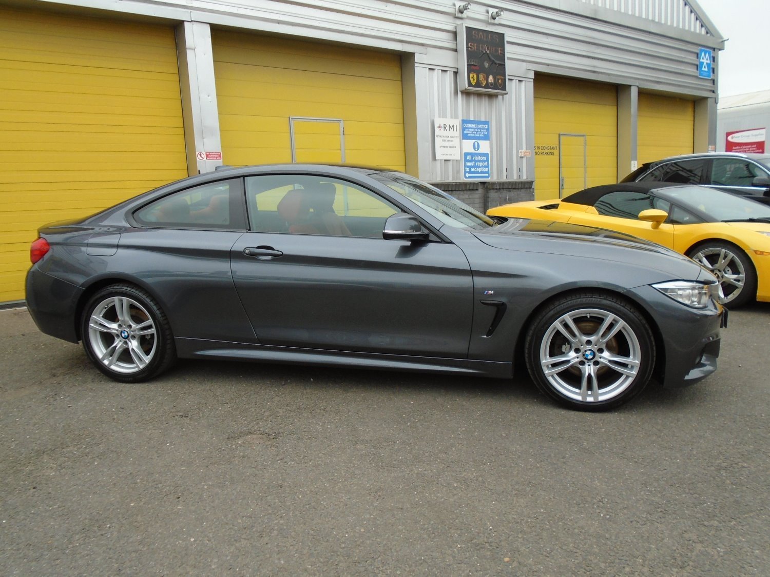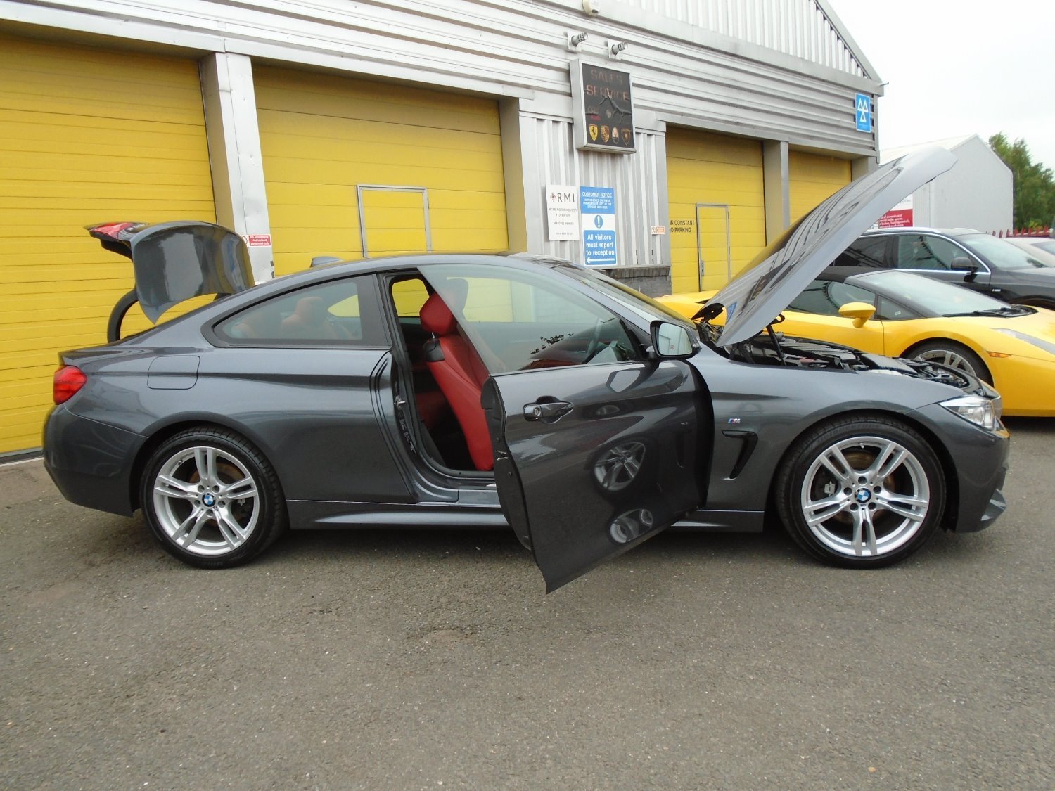 A perfect example of this BMW 420D M Sport two door with Sat Nav, Red leather seats, Full BMW history, four brand new BridgeStone tyres fitted, read to be driven away., Next MOT due 28/09/2018, Air Conditioning, Automatic with Two - Zone Control, Auto Start - Stop, Cruise Control with Brake Function, DAB Tuner, Park Distance Control (PDC), Front and Rear, Seat Heating for Driver and Front Passenger, 18in Light Alloy M Star - Spoke Style 441M Wheels with Mixed Tyres, Alarm System (Thatcham 1) with Remote Control, BMW Professional Radio with Single CD Player (with MP3 Playback Capability), 3.5mm Auxiliary Input and USB Audio Interface, iDrive Controller with 8 Favourite Buttons, Bluetooth Hands - Free Facility, Comfort Go Keyless Engine Start, Dakota Leather Upholstery, Electronic Windows - Front with Open/Close Fingertip Control, Anti-Trap Facility and Comfort Closing Function, Heat Protection Glazing with Green-Tint, Hill - Start Assistant, On - Board Computer (OBC), Rain Sensor, Start/Stop Button with Comfort Go Keyless Engine Start, Tyre Pressure Monitor. 4 seats, Mineralgrau Metallic.