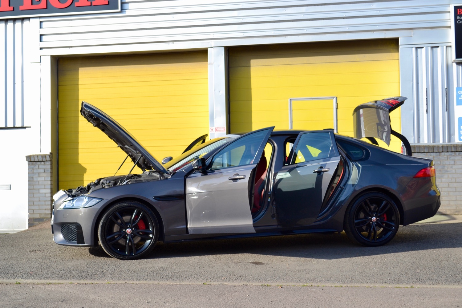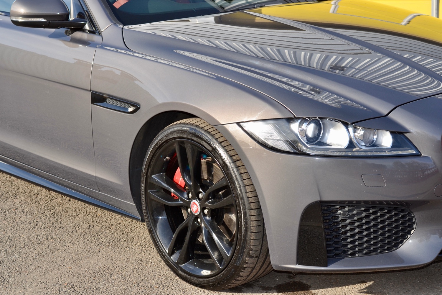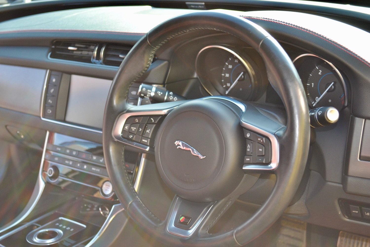 19in Alloy Wheels - Razor 7 Twin-Spoke with Silver Finish, 8in Capacitive Touchscreen, AEB - Autonomous Emergency Braking, Acoustic Layer Windshield, Adaptive Dynamics, Bluetooth Telephone Connectivity, Cruise Control with Adaptive Speed Limiter, DAB Radio + and DMB, Door Mirrors - Power Folding with Auto-dimming-Puddle Light and Clear Side Turn Indicators, Dynamic Volume Control, Front Parking Aid, Headlights - Bi-Function HID Xenon with LED Daytime Running Lights, Heated Front Seats, Heated Front Windscreen, InControl Apps, InControl Touch Navigation - SD, Interactive Voice Control, Jaguar Smart Key System with Keyless Entry, Jaguar Smart Key System with Keyless Start, Lane Departure Warning, Meridian Audio System, Rear Parking Aid, Rear View Camera, Seats - 10x10 Way Front Seats - Electric Adjustment, Seats - Driver Memory, Seats - Sports, Torque Vectoring by Braking - TVBB, Traffic Sign Recognition with Intelligent Speed Limiter, 1x USB Socket, 2-Zone Climate Control, AM-FM Radio, ASPC - All Surface Progress Control, Airbags - Front Side, Airbags - Passenger, Airbags - Side Curtain, Analogue Dials with 5in Full Colour TFT Display, Auto-Dimming Interior Rear View Mirror, Automatic Headlight On, Body Coloured Bootlid Mounted Spoiler, Bright Finish Stainless Steel Pedals, CBC - Cornering Brake Control, EBD - Electronic Brake-Force Distribution, EPB - Electronic Parking Brake - Drive Away Release, Electrochromic Rear Interior View Mirror, Front Seats - Whiplash Reduction System, Grey Figured Ebony Veneer, Headlight Power Wash, Headlining - Morzine - Jet, Heat Insulating Glass - Green All-round, Heated Washer Jets, InControl Protect, InControl Remote Premium for Warranty Period, LED Tail Lights, Leatherette Wrapped IP Topper, Perimeter Alarm, Rain Sensing Windscreen Wipers, Rear Valence - Gloss Black - S, Red Brake Calipers, Remote Control Central Locking, Seats - Lumbar Support - Driver-Passenger-4 Way Power, Side Sills - Gloss Black, Sill Finishers - Metal with Jaguar S Branding, Steering Column - Electric Adjustment for Height and Reach with Entry and Exit Tilt-Away, Steering Wheel - Softgrain Leather S Branded Sports Style, Subwoofer, Trac DSC - Dynamic Stability Control with 3 Setting Levels, Traction Control, Trailer Stability Control, Trunk Finisher - Satin Chrome, Twin Tailpipes, Tyre Pressure Monitoring System, Window Surrounds - Gloss Black Finish, iPod Integration
