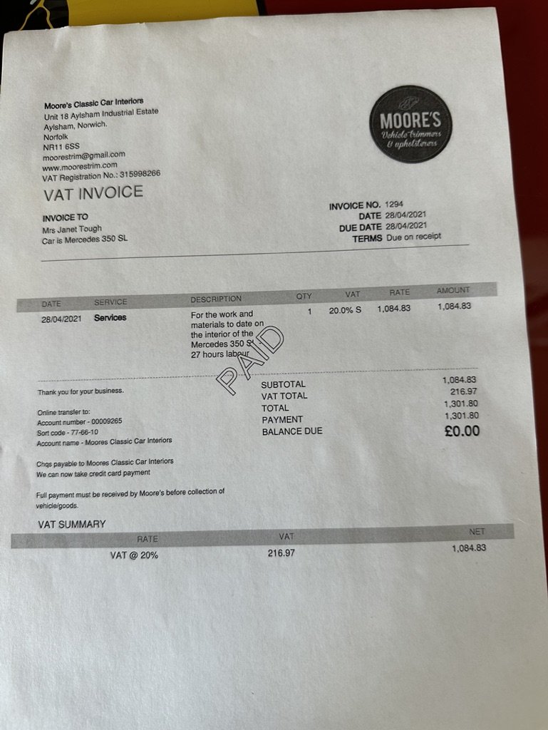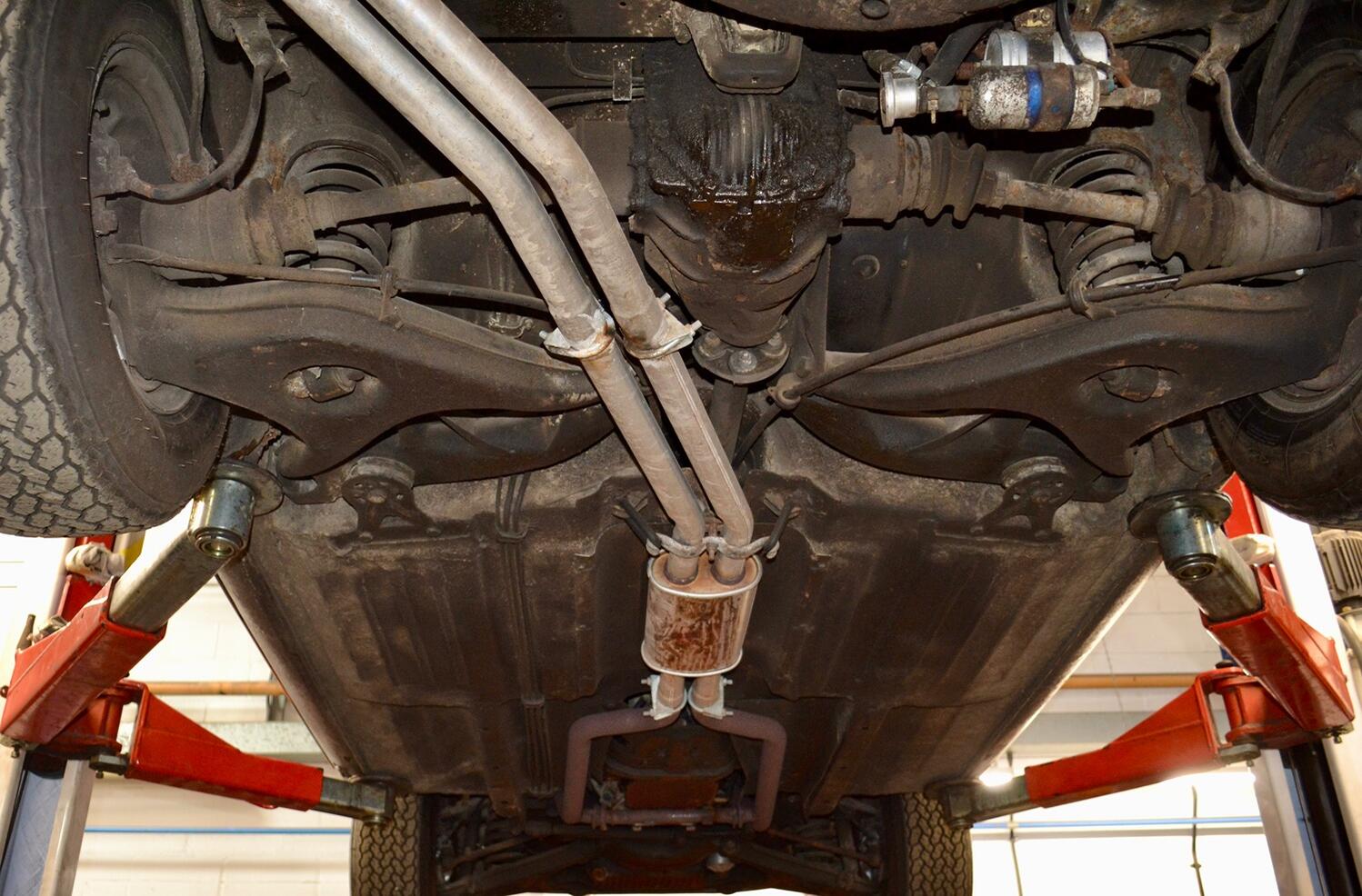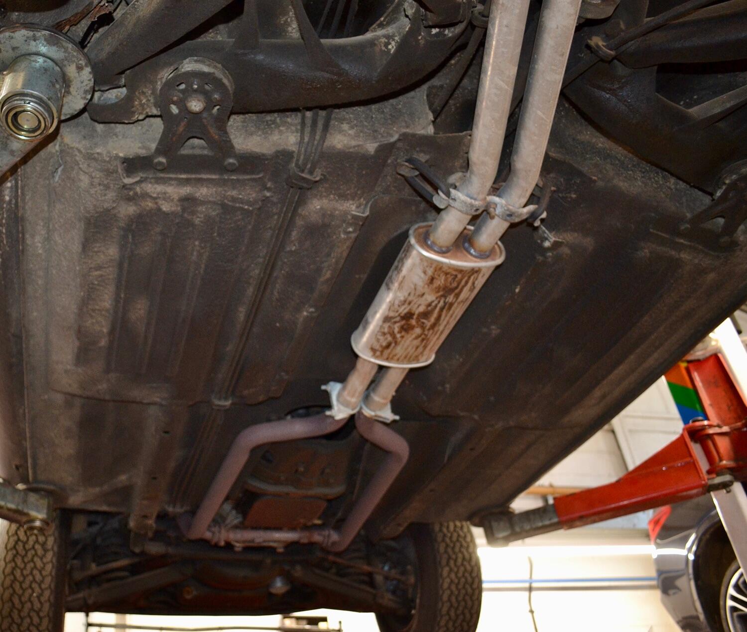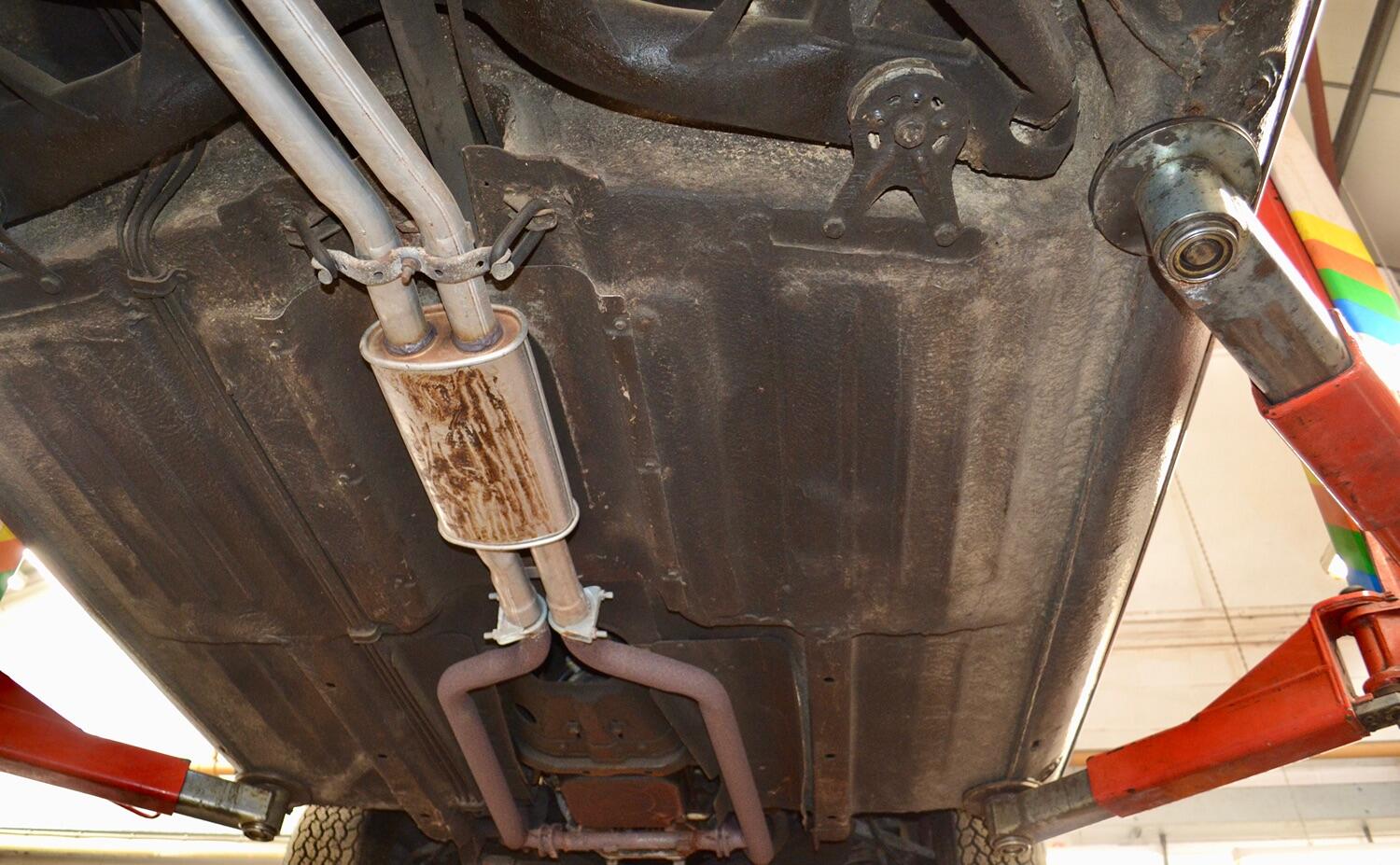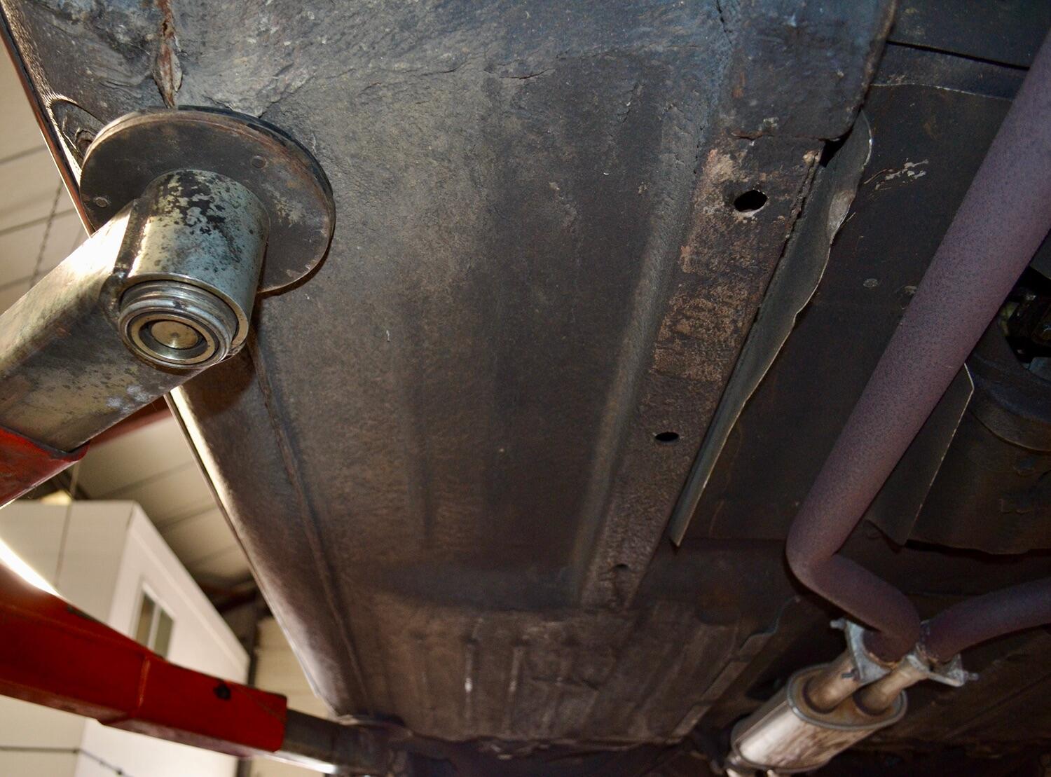 The exterior colour was originally Bronze it was painted black at some point in its life. The black shines nicely and the exterior looks neat. As you can see it comes with origenal Mexican alloy wheels, together with the bumpers and windows, are in neat condition, considering their age and showing low mileage. This also applies to the underside of this SL in very good condition . The black upholstery still looks good, together with the carpets, the dashboard and the entire instrumentation. This Mercedes is also equipped with hard and soft top, soft top showing signs of wear.