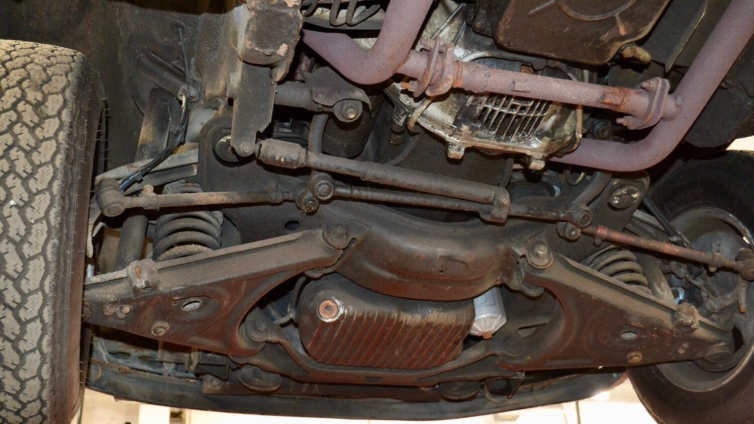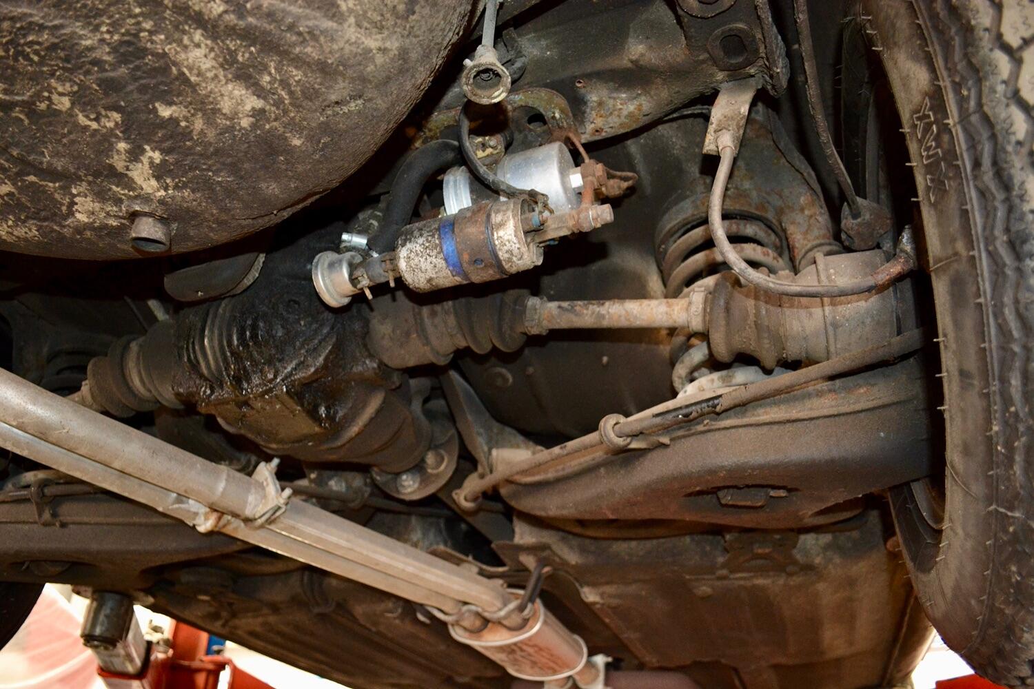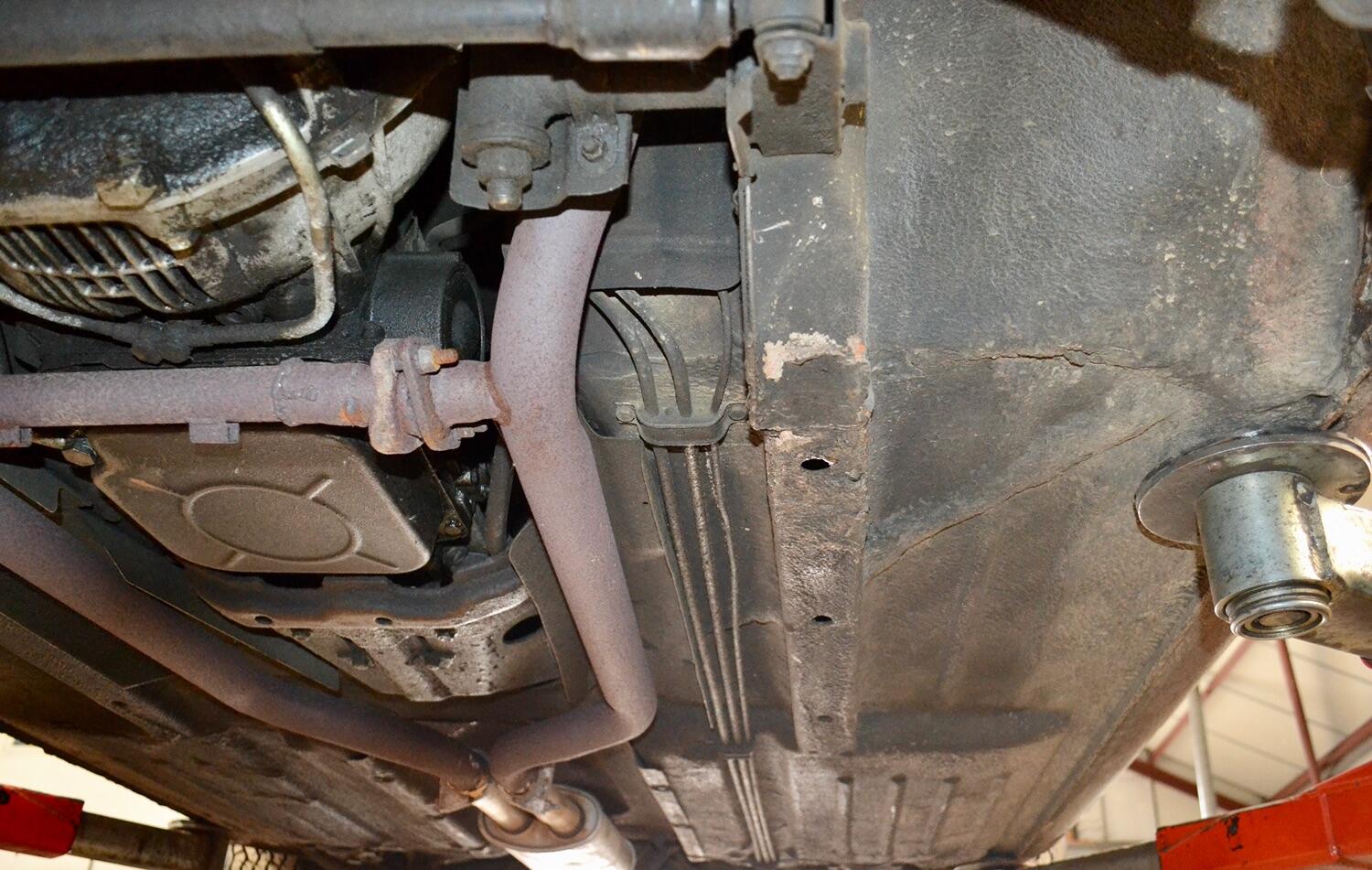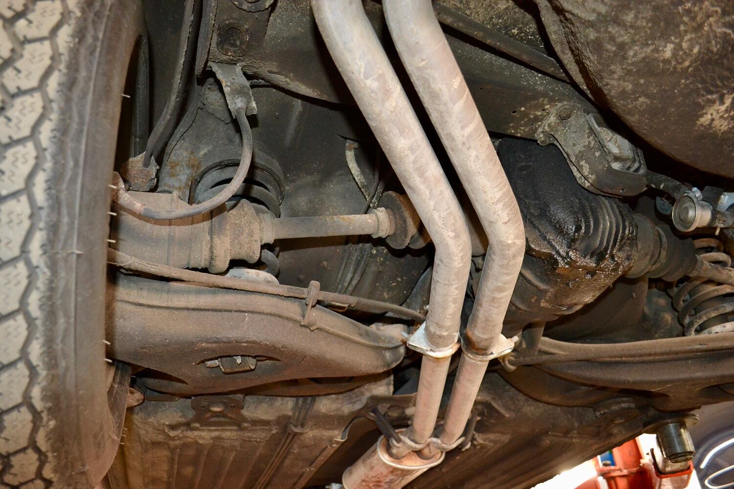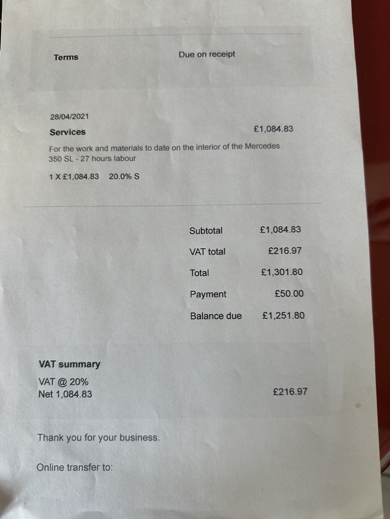 The exterior colour was originally Bronze it was painted black at some point in its life. The black shines nicely and the exterior looks neat. As you can see it comes with origenal Mexican alloy wheels, together with the bumpers and windows, are in neat condition, considering their age and showing low mileage. This also applies to the underside of this SL in very good condition . The black upholstery still looks good, together with the carpets, the dashboard and the entire instrumentation. This Mercedes is also equipped with hard and soft top, soft top showing signs of wear.