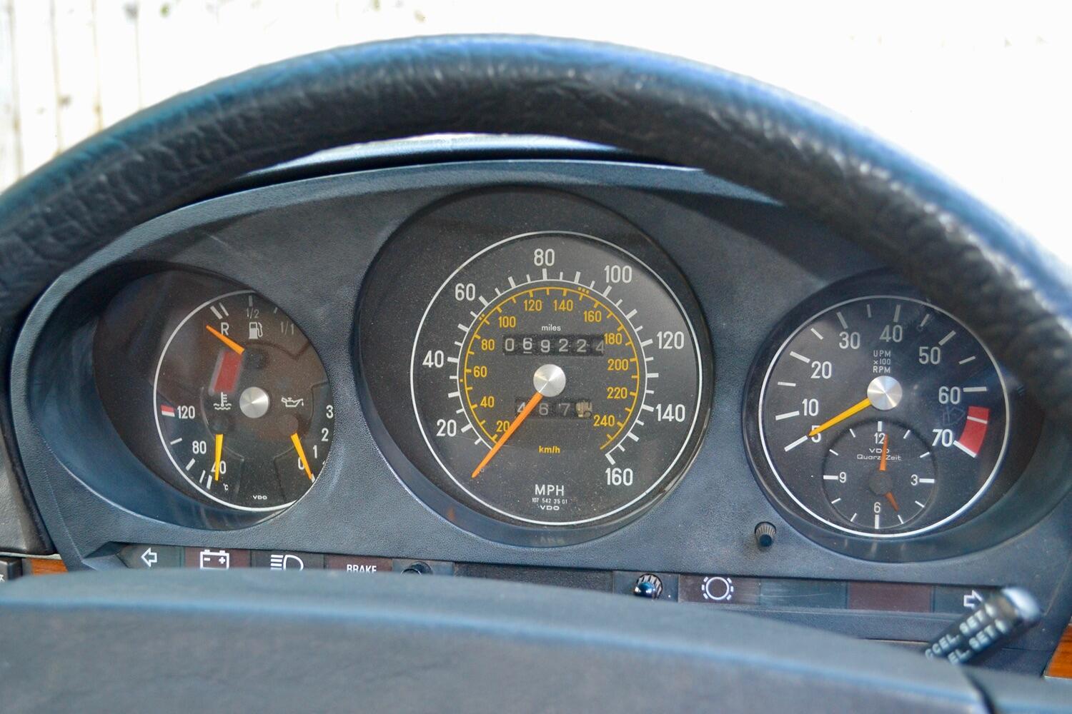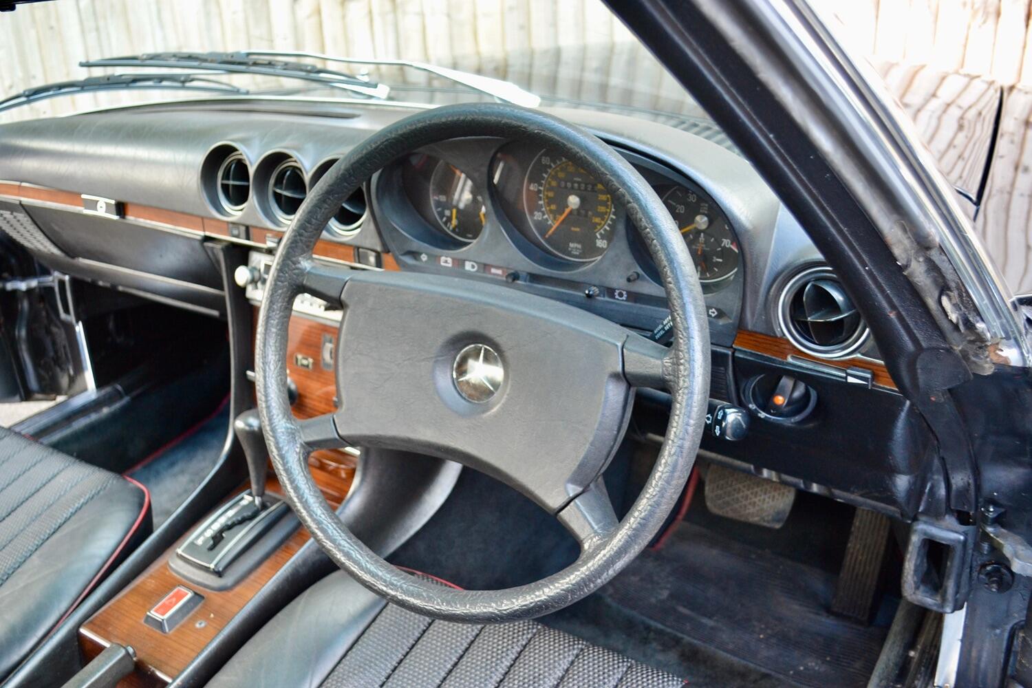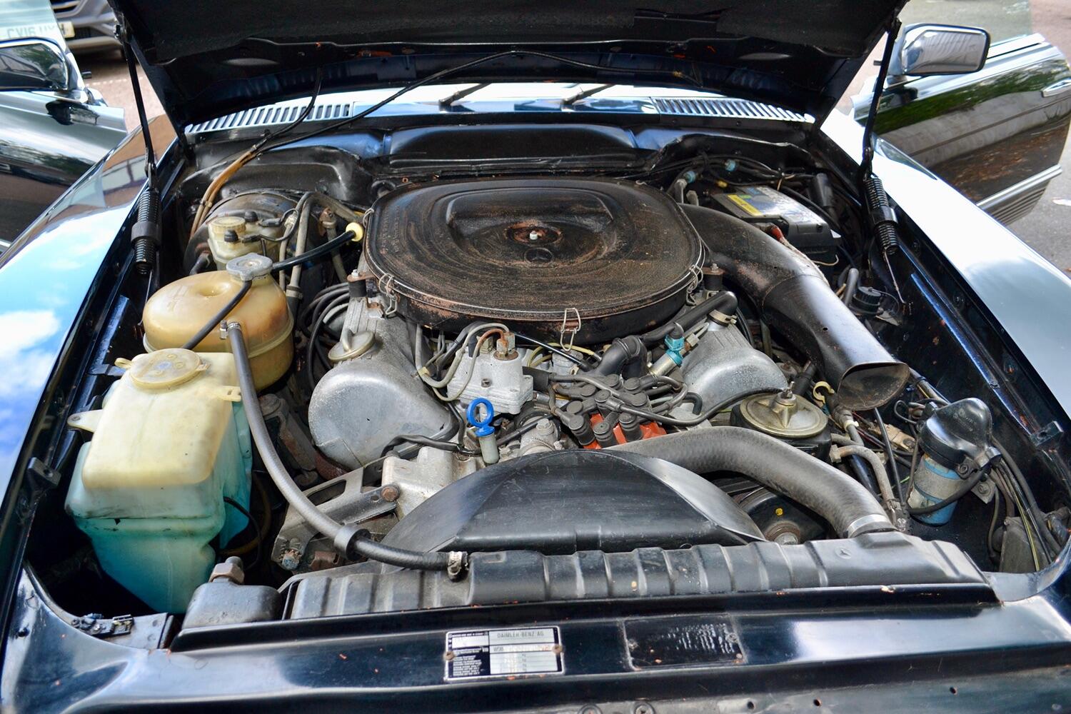 Under the bonnet, we find the 3.5 Lt V8. This is a great engine and a good combination with the automatic gearbox. Mercedes really did a good job with the suspension at the time, and this car takes you back to 1980. Stable handling and simply a nice driving car.