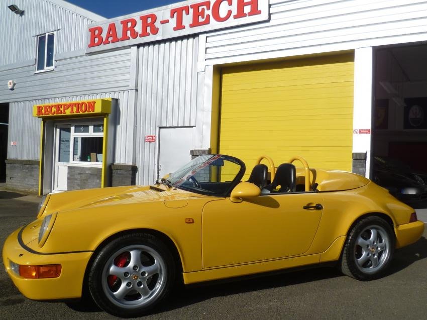The 964 Speedster we have has been fitted with a Safety Devices Roll Cage, yellow racing harness and fire extinguisher (all of which can be unbolted easily if needed ), also the suspension and exhaust system have been upgraded and fitted professionally by RUF Automobile GB in 1999.