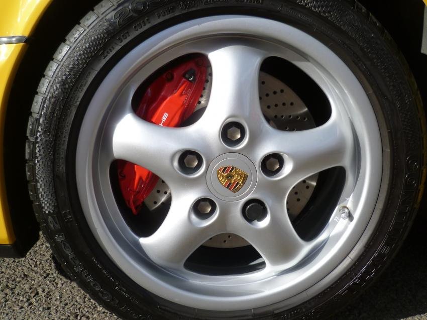 The braking system has been upgraded to 993 turbo brake discs and " Big Reds " turbo red brake calipers have also been fitted.