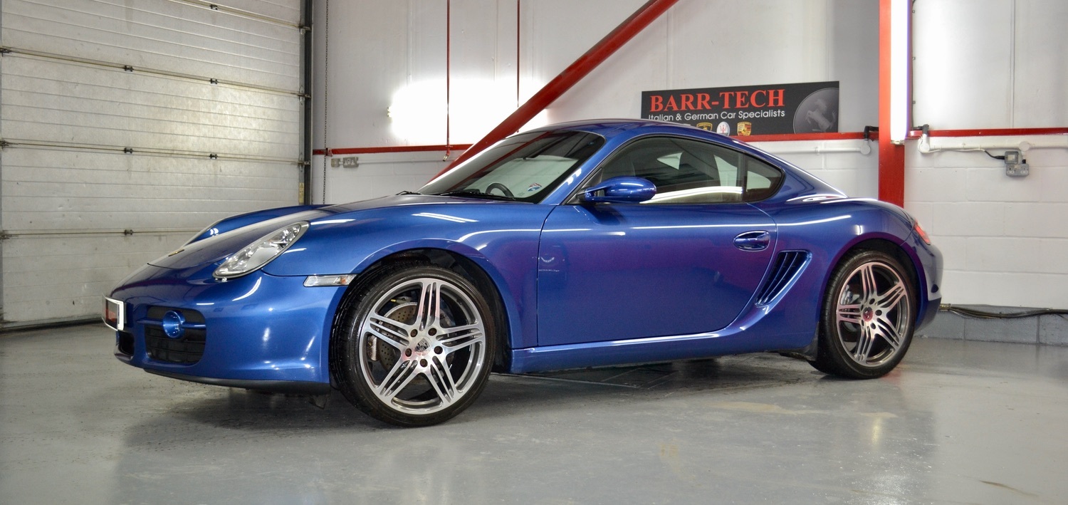 Barr-Tech Specialist Cars Ltd are pleased to be selling this lovely low mileage example of the 1st Generation 987 base Cayman equipped with the 2.7 litre engine and 5 speed manual gearbox, in the most desirable of colours, “Cobalt Blue metallic”.